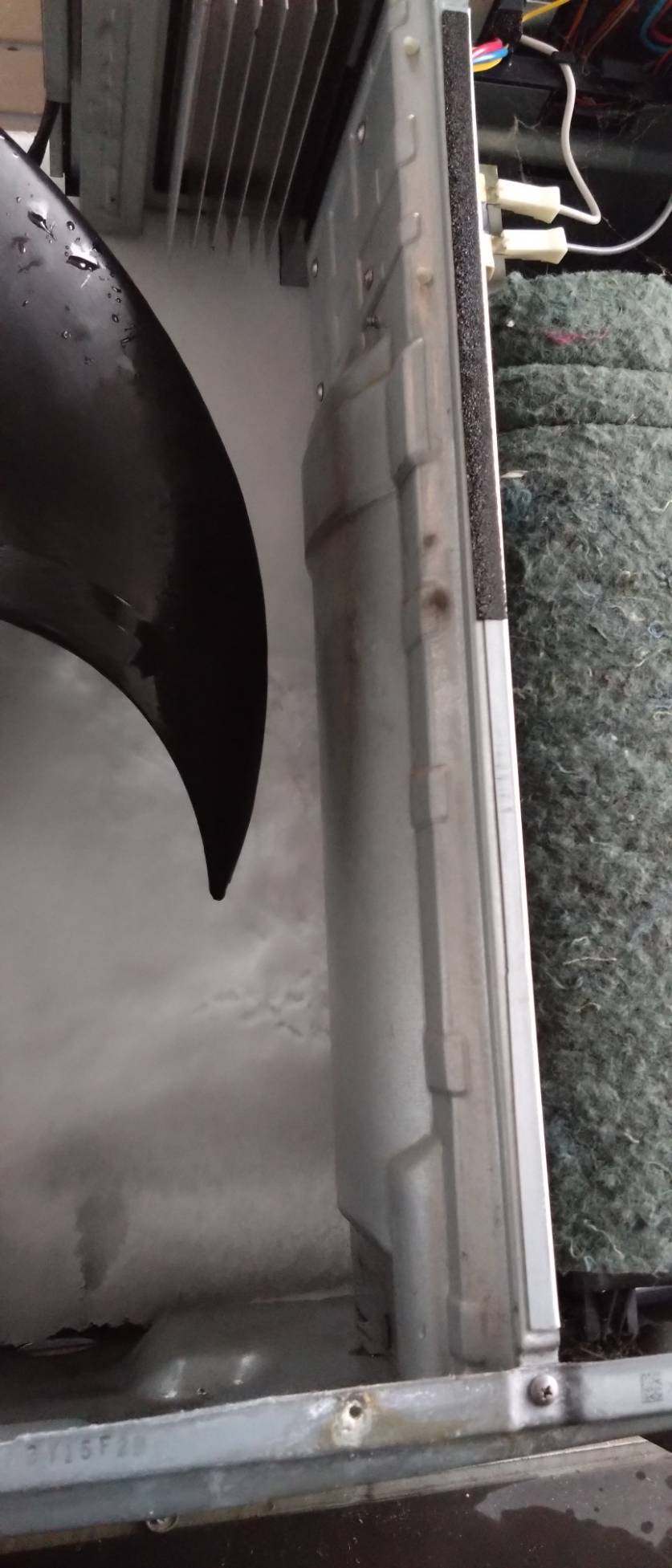 室外機の表面上は雪が無いように見えますが、内部には霜が付着している状態でした。